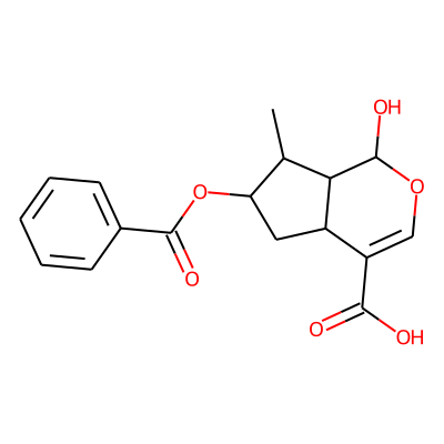 CC1C(OC(=O)c2ccccc2)CC2C(C(=O)O)=COC(O)C21| HBA: | 6 | RingCount: | 3 |