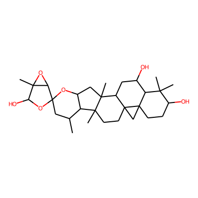 CC1CC2(OC3CC4(C)C5CC(O)C6C(C)(C)C(O)CCC67CC57CCC4(C)C13)OC(O)C1(C)OC21| HBA: | 6 | RingCount: | 8 |