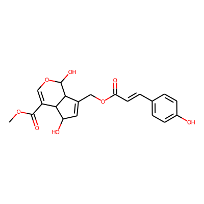 COC(=O)C1=COC(O)C2C(COC(=O)C=Cc3ccc(O)cc3)=CC(O)C12| HBA: | 8 | RingCount: | 3 |
