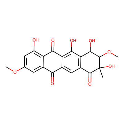 COc1cc(O)c2c(c1)C(=O)c1cc3c(c(O)c1C2=O)C(O)C(OC)C(C)(O)C3=O| HBA: | 9 | RingCount: | 4 |