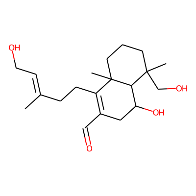CC(=CCO)CCC1=C(C=O)CC(O)C2C(C)(CO)CCCC12C| HBA: | 4 | RingCount: | 2 |