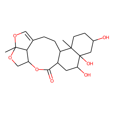 CC12OC=C3CCC4C(CC(O)C5(O)CC(O)CCC45C)C(=O)OC(CO1)C32| HBA: | 7 | RingCount: | 5 |