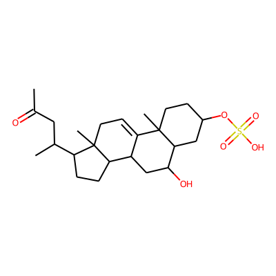 CC(=O)CC(C)C1CCC2C3CC(O)C4CC(OS(=O)(=O)O)CCC4(C)C3=CCC12C| HBA: | 6 | RingCount: | 4 |