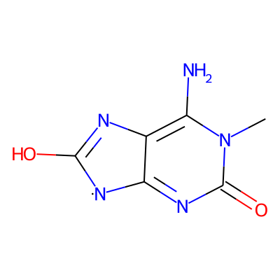 Cn1c(N)c2c(nc1=O)[N]C(O)=N2| HBA: | 7 | RingCount: | 2 |