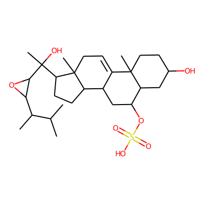 CC(C)C(C)C1OC1C(C)(O)C1CCC2C3CC(OS(=O)(=O)O)C4CC(O)CCC4(C)C3=CCC21C| HBA: | 7 | RingCount: | 5 |