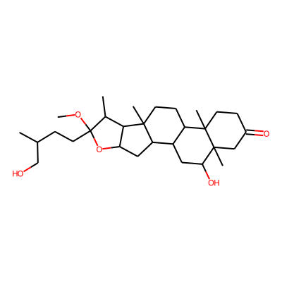 COC1(CCC(C)CO)OC2CC3C4CC(O)C5(C)CC(=O)CCC5(C)C4CCC3(C)C2C1C| HBA: | 5 | RingCount: | 5 |