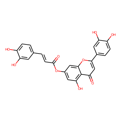 O=C(C=Cc1ccc(O)c(O)c1)Oc1cc(O)c2c(=O)cc(-c3ccc(O)c(O)c3)oc2c1Sugarmoiety: