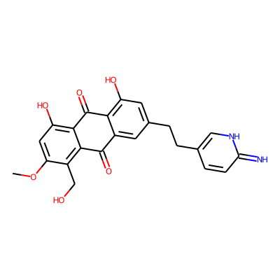 COc1cc(O)c2c(c1CO)C(=O)c1cc(CCc3ccc(=N)[nH]c3)cc(O)c1C2=O| HBA: | 8 | RingCount: | 4 |