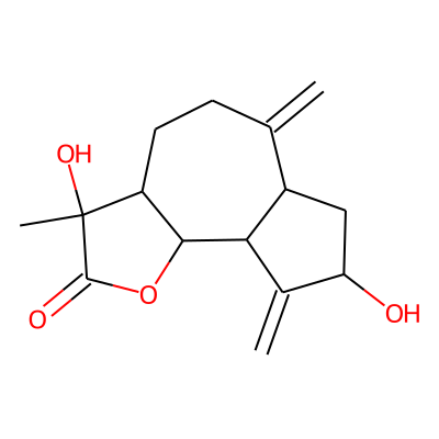 C=C1CCC2C(OC(=O)C2(C)O)C2C(=C)C(O)CC12| HBA: | 4 | RingCount: | 3 |