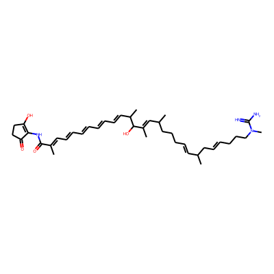 CC(=CC=CC=CC=CC=CC(C)C(O)C(C)=CC(C)CCCC=CC(C)CC=CCCCN(C)C(=N)N)C(=O)NC1=C(O)CCC1=O| HBA: | 8 | RingCount: | 1 |