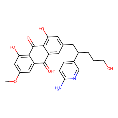 COc1cc(O)c2c(c1)C(=[OH+])c1cc(CC(CCCO)c3ccc(N)nc3)cc(O)c1C2=O| HBA: | 8 | RingCount: | 4 |