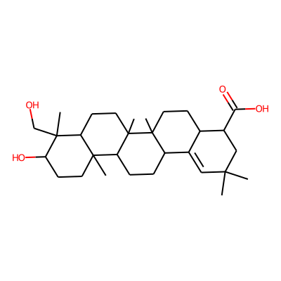 CC1(C)C=C2C(CCC3(C)C2CCC2C4(C)CCC(O)C(C)(CO)C4CCC23C)C(C(=O)O)C1| HBA: | 4 | RingCount: | 5 |