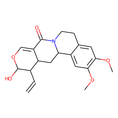C=CC1C(O)OC=C2C(=O)N3CCc4cc(OC)c(OC)cc4C3CC21| HBA: | 6 | RingCount: | 4 |