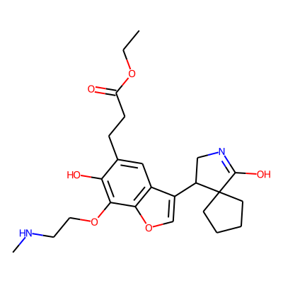CCOC(=O)CCc1cc2c(C3CN=C(O)C34CCCC4)coc2c(OCCNC)c1O| HBA: | 8 | RingCount: | 4 |