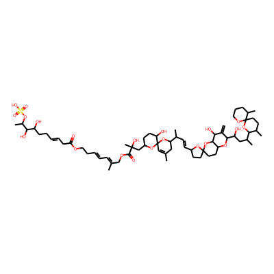 C=C1C(O)C2OC3(CCC(C=CC(C)C4CC(C)=CC5(OC(CC(C)(O)C(=O)OCC(C)=CC=CCCOC(=O)CC=CCCC(O)C(O)C(C)OS(=O)(=O)O)CCC5O)O4)O3)CCC2OC1C(O)CC(C)C1OC2(CCC1C)OCCCC2C| HBA: | 21 | RingCount: | 7 |