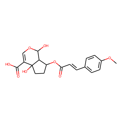 COc1ccc(C=CC(=O)OC2CCC3(O)C(C(=O)O)=COC(O)C23)cc1Sugarmoiety: