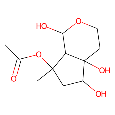 CC(=O)OC1(C)CC(O)C2(O)CCOC(O)C12| HBA: | 6 | RingCount: | 2 |