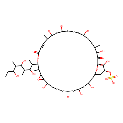 CCC(O)C(C)C(O)C(C)C(O)C(C)C1OC(=O)C=CC(C)C(O)CC(O)CCCC(O)CCC(C)C(O)C(=O)C2(O)OC(CC(O)CC(O)CC(O)CCCC(O)C3OC3C1C)CC(OS(=O)(=O)O)C2O| HBA: | 22 | RingCount: | 3 |