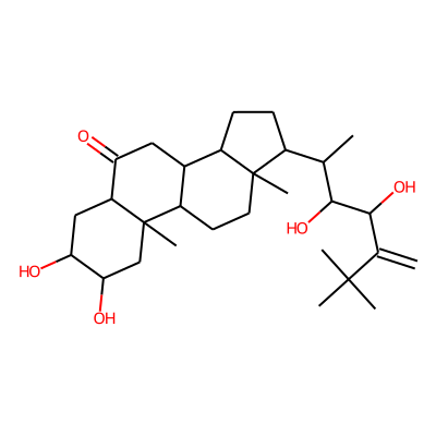 C=C(C(O)C(O)C(C)C1CCC2C3CC(=O)C4CC(O)C(O)CC4(C)C3CCC12C)C(C)(C)C| HBA: | 5 | RingCount: | 4 |