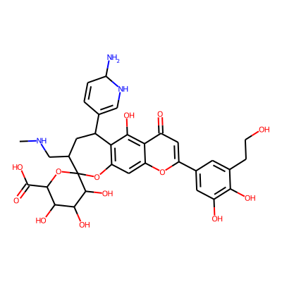 CNCC1CC(C2=CNC(N)C=C2)c2c(cc3oc(-c4cc(O)c(O)c(CCO)c4)cc(=O)c3c2O)OC12OC(C(=O)O)C(O)C(O)C2O| HBA: | 16 | RingCount: | 6 |
