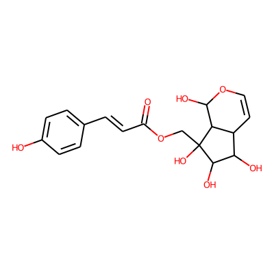 O=C(C=Cc1ccc(O)cc1)OCC1(O)C(O)C(O)C2C=COC(O)C21| HBA: | 8 | RingCount: | 3 |