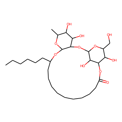 CCCCCCC1CCCCCCCCCC(=O)OC2C(O)C(CO)OC(OC3C(O1)OC(C)C(O)C3O)C2O| HBA: | 11 | RingCount: | 3 |