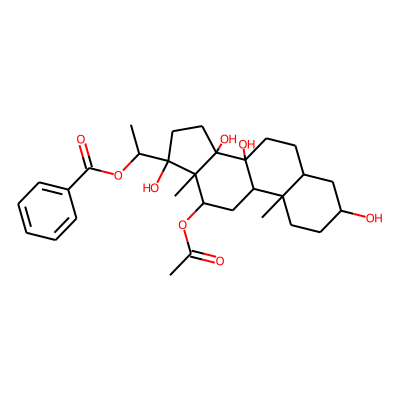CC(=O)OC1CC2C3(C)CCC(O)CC3CCC2(O)C2(O)CCC(O)(C(C)OC(=O)c3ccccc3)C12C| HBA: | 8 | RingCount: | 5 |