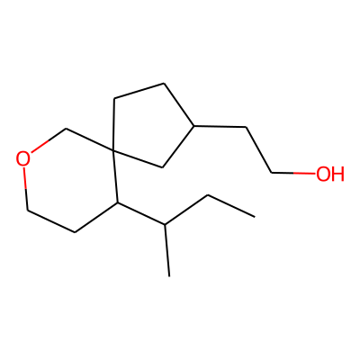 CCC(C)C1CCOCC12CCC(CCO)C2| HBA: | 2 | RingCount: | 2 |