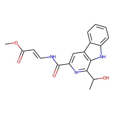 COC(=O)C=CNC(=O)c1cc2c([nH]c3ccccc32)c(C(C)O)n1| HBA: | 7 | RingCount: | 3 |