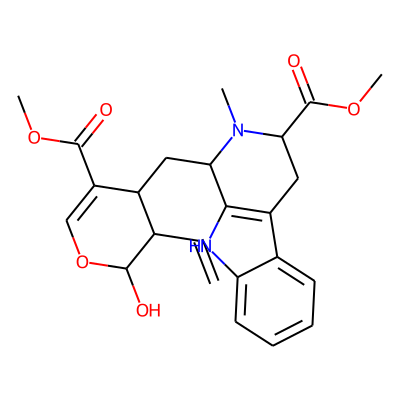 C=CC1C(O)OC=C(C(=O)OC)C1CC1c2[nH]c3ccccc3c2CC(C(=O)OC)N1C| HBA: | 8 | RingCount: | 4 |