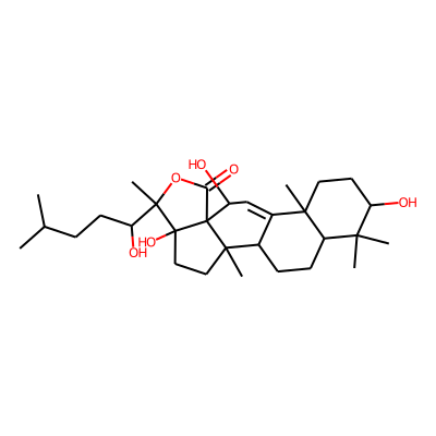 CC(C)CCC(O)C1(C)OC(=O)C23C(O)C=C4C(CCC5C4(C)CCC(O)C5(C)C)C2(C)CCC13O| HBA: | 6 | RingCount: | 5 |