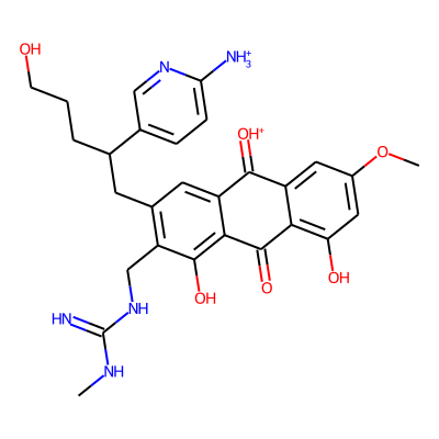 CNC(=N)NCc1c(CC(CCCO)c2ccc([NH3+])nc2)cc2c(c1O)C(=O)c1c(O)cc(OC)cc1C2=[OH+]| HBA: | 11 | RingCount: | 4 |