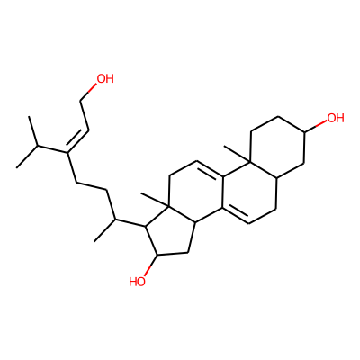 CC(C)C(=CCO)CCC(C)C1C(O)CC2C3=CCC4CC(O)CCC4(C)C3=CCC21C| HBA: | 3 | RingCount: | 4 |