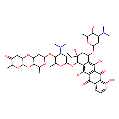 CCC1(O)CC(OC2CC(N(C)C)C(O)C(C)O2)c2c(O)c3c(c(O)c2C1OC1CC(N(C)C)C(OC2CC4OC5CC(=O)C(C)OC5OC4C(C)O2)C(C)O1)C(=O)c1cccc(O)c1C3=O| HBA: | 19 | RingCount: | 9 |