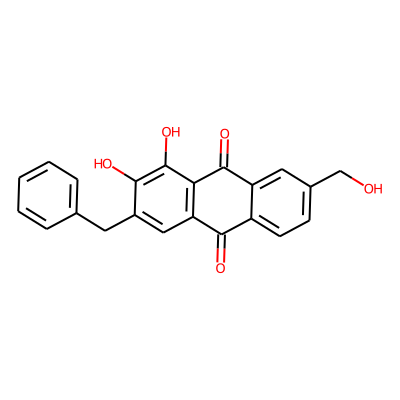 O=C1c2ccc(CO)cc2C(=O)c2c1cc(Cc1ccccc1)c(O)c2O| HBA: | 5 | RingCount: | 4 |