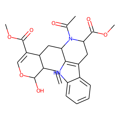 C=CC1C(O)OC=C(C(=O)OC)C1CC1c2[nH]c3ccccc3c2CC(C(=O)OC)N1C(C)=O| HBA: | 9 | RingCount: | 4 |
