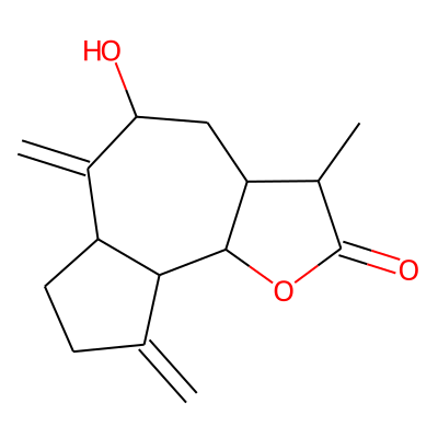 C=C1C(O)CC2C(C)C(=O)OC2C2C(=C)CCC12| HBA: | 3 | RingCount: | 3 |