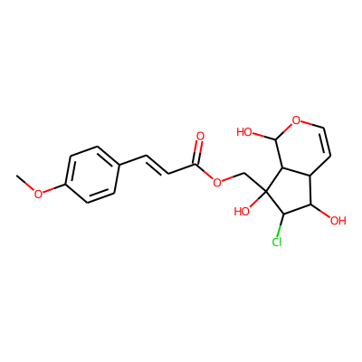 COc1ccc(C=CC(=O)OCC2(O)C(Cl)C(O)C3C=COC(OC4OC(CO)C(O)C(O)C4O)C32)cc1Aglycone: