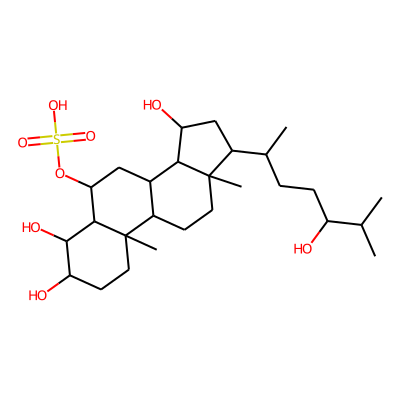 CC(C)C(O)CCC(C)C1CC(O)C2C3CC(OS(=O)(=O)O)C4C(O)C(O)CCC4(C)C3CCC12C| HBA: | 8 | RingCount: | 4 |