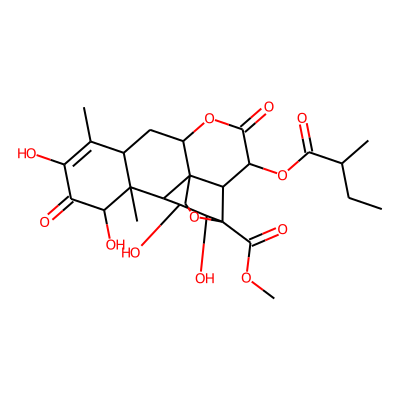 CCC(C)C(=O)OC1C(=O)OC2CC3C(C)=C(O)C(=O)C(O)C3(C)C3C(O)C(O)C4(C(=O)OC)OCC23C14| HBA: | 12 | RingCount: | 5 |