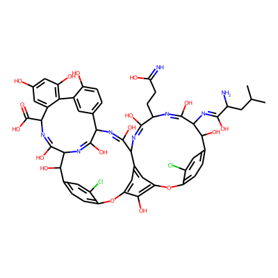 CC(C)CC(N)C(O)=NC1C(O)=NC(CCC(=N)O)C(O)=NC2C(O)=NC3C(O)=NC(C(O)=NC(C(=O)O)c4cc(O)cc(O)c4-c4cc3ccc4O)C(O)c3ccc(c(Cl)c3)Oc3cc2cc(c3O)Oc2ccc(cc2Cl)C1O