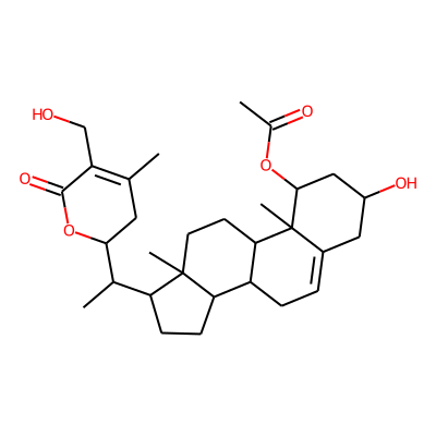CC(=O)OC1CC(O)CC2=CCC3C4CCC(C(C)C5CC(C)=C(CO)C(=O)O5)C4(C)CCC3C21C| HBA: | 6 | RingCount: | 5 |