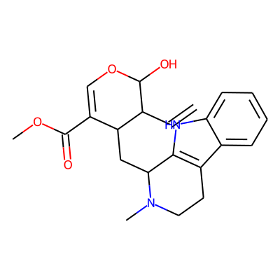 C=CC1C(O)OC=C(C(=O)OC)C1CC1c2[nH]c3ccccc3c2CCN1C| HBA: | 6 | RingCount: | 4 |