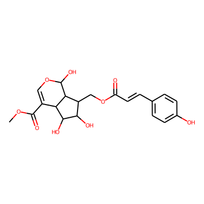 COC(=O)C1=COC(O)C2C(COC(=O)C=Cc3ccc(O)cc3)C(O)C(O)C12| HBA: | 9 | RingCount: | 3 |