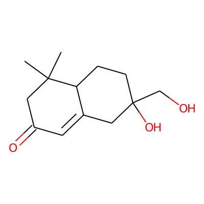 CC1(C)CC(=O)C=C2CC(O)(CO)CCC21| HBA: | 3 | RingCount: | 2 |