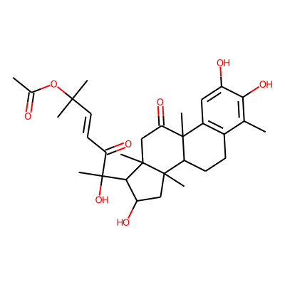 CC(=O)OC(C)(C)C=CC(=O)C(C)(O)C1C(O)CC2(C)C3CCc4c(cc(O)c(O)c4C)C3(C)C(=O)CC12C| HBA: | 8 | RingCount: | 4 |