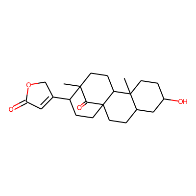 CC12CCC3C(CCC1C1=CC(=O)OC1)(CCC1CC(O)CCC13C)C2=O| HBA: | 4 | RingCount: | 5 |