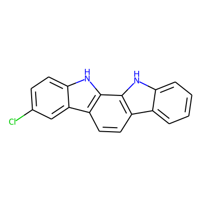 Clc1ccc2[nH]c3c(ccc4c5ccccc5[nH]c43)c2c1| HBA: | 2 | RingCount: | 5 |
