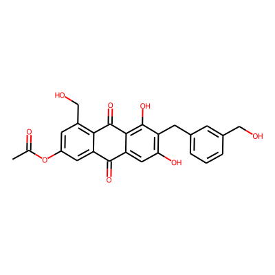 CC(=O)Oc1cc(CO)c2c(c1)C(=O)c1cc(O)c(Cc3cccc(CO)c3)c(O)c1C2=O| HBA: | 8 | RingCount: | 4 |