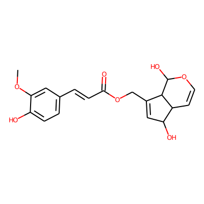 COc1cc(C=CC(=O)OCC2=CC(O)C3C=COC(O)C23)ccc1OSugarmoiety: